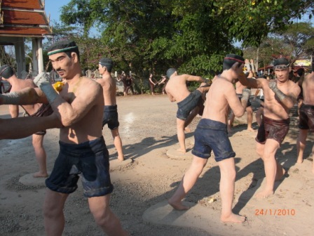 何故か目的地(地元の小さな観光地になっていました)には、ムエタイ選手が大挙して鍛錬しておりました。